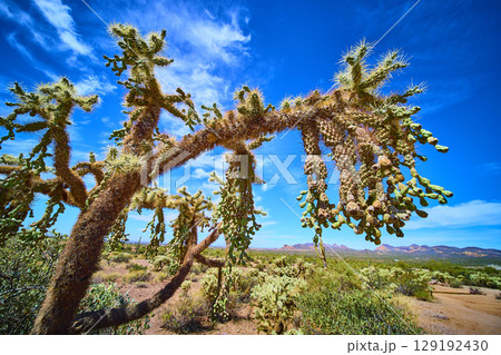 Cholla Cactus Spines and Desert Landscape Sonoran Wilderness Low Angle Close Up