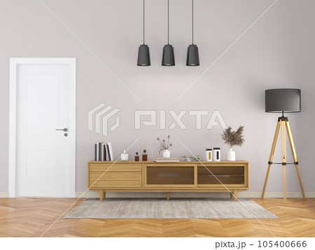 Cabinet room wooden interior wabisabi decoration japanese style.3D rendering