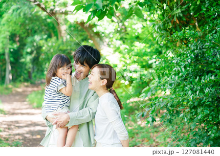 家庭在木質甲板上用餐(豪華露營、戶外、別墅、小屋)