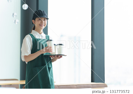 在咖啡館工作的女人、咖啡館店員、兼職工作、肖像