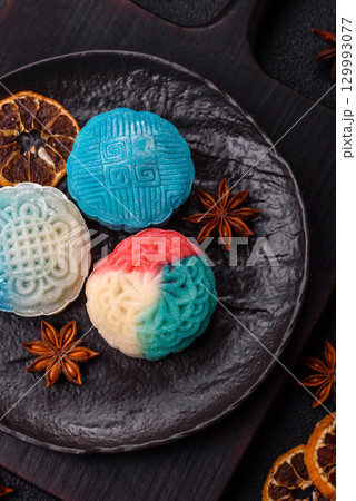 Chinese mooncake is an Asian sweet dessert. Asian mooncake as a background for your design