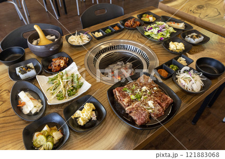 Korean bbq food. Marinated pork ribs