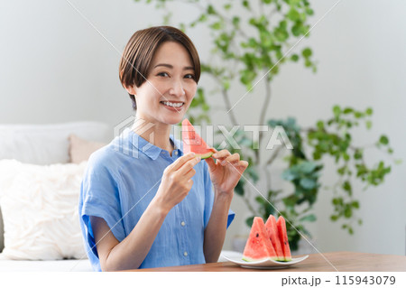 女人吃瓜甜點