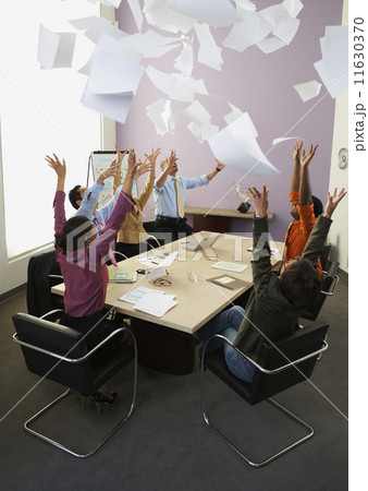 Businesspeople cheering at meeting