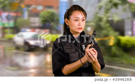 Asian American Police Officer at Crime scene