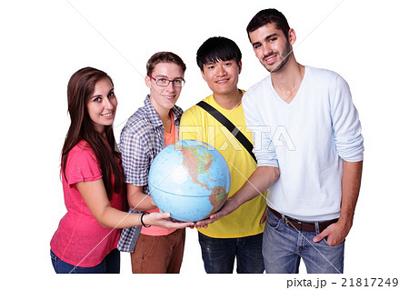 A pretty Asian female college student is holding her books and the Australia flag. Exchange student