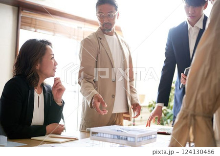 A male real estate agent or business consultant is meeting, talking, and giving advice to his client