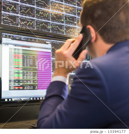 A professional Asian businessman is sipping coffee while talking on the phone with his client