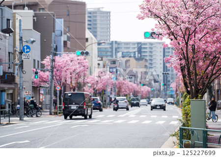 稻城市道路兩旁盛開的橫濱櫻花和i-bus