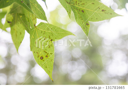特寫鏡頭拍攝陽光從葉片的後方穿透的樣貌