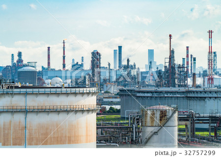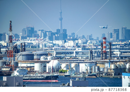 從川崎浮島眺望高聳的煉油廠。