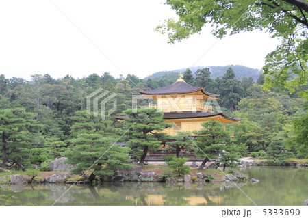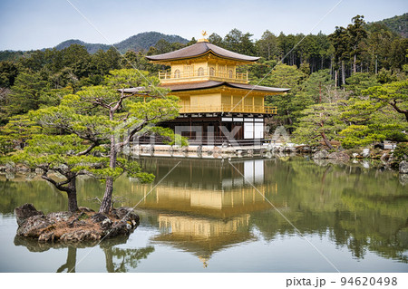 通過Kagaku-ike(京都市北區)看到的金閣寺的“Shurudo-dono”