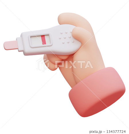 Hand Holding negative Pregnancy Test Device cartoon style 3D graphic