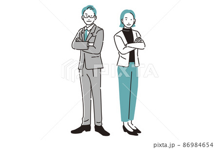 一對微笑的老年夫婦思考人生計劃並透過家庭預算管理儲蓄、儲蓄和投資的插圖_退休金/退休金