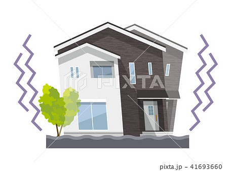 由於液化導致地面沉降而沉沒的房屋的等軸圖