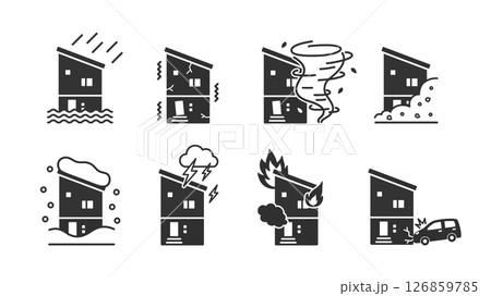 由於位置條件而導致的災害風險、麻煩和簡單住房的等軸圖