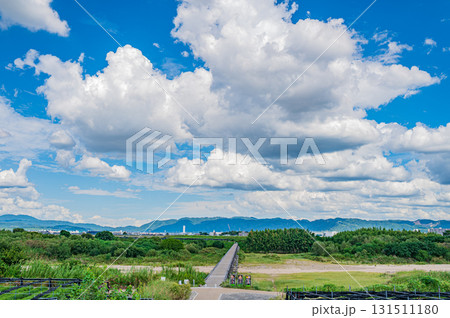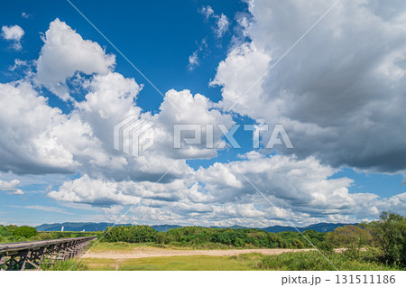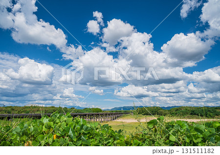 木津川風景:神津屋橋(流水橋)-京都府八幡市京都南路的景色