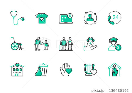 Community Effort Humanity Volunteer Group Cleaning Outdoor Park Indoor House Stick Figure Pictogram Icon. A set of pictograms representing group of volunteer ready for cleaning activity.