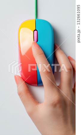 Colorful computer mouse hand clicking vibrant close up vertical modern playful
