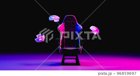 Gamer's chair surrounded and virtual reality goggles. 3d render