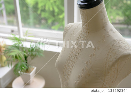 Stylish fashion mannequin draped with soft, flowing cloth.