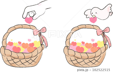 一隻手將一顆心放入籃子一隻鴿子將一顆心放入籃子