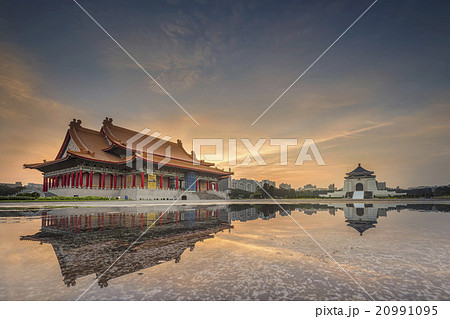 Beautiful architecture building and landmark chiang kai-shek memorial hall in taipei city