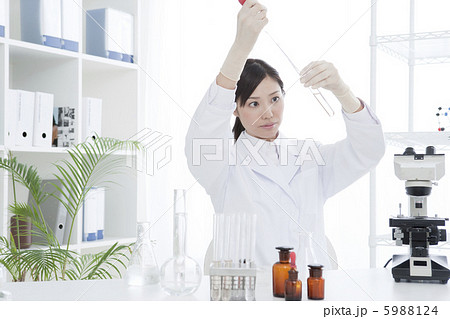 一個30多歲的女人,用滴管將液體放入培養皿中