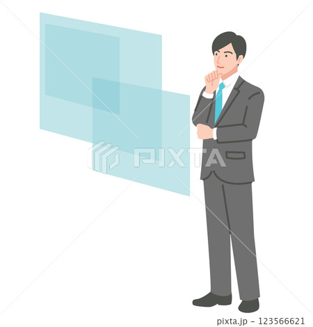 思考、擔憂、煩惱的年輕商人向量插圖素材集_線寬可編輯