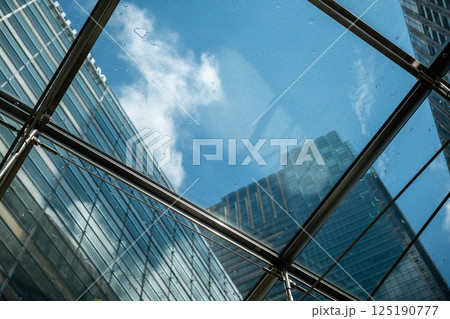 [名古屋]摩天大樓窗戶中倒映的天空和雲彩