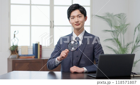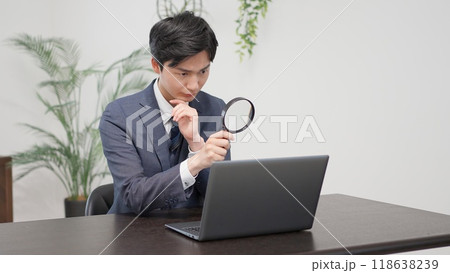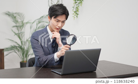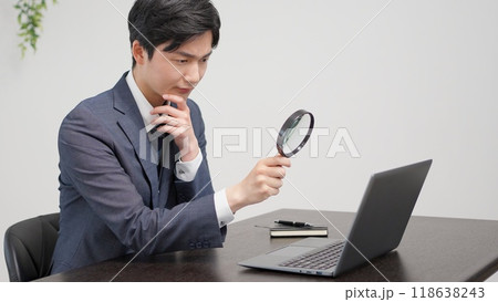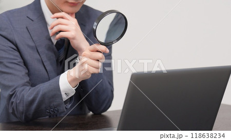 一個穿著西裝的男人用放大鏡進行調查的簡單插圖
