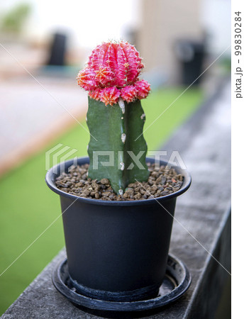 Beautiful succulent plant and cactus blossom in pot, decoration houseplant