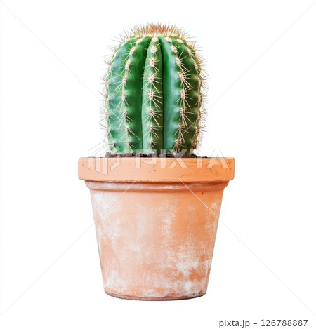 Cactus in Textured Pots Isolated on White Background Arrangement