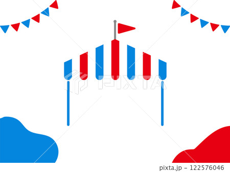 2025 年大阪世博會圖像顏色 — — 紅色和藍色帳篷、花環、旗幟圖示向量插圖