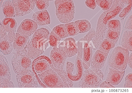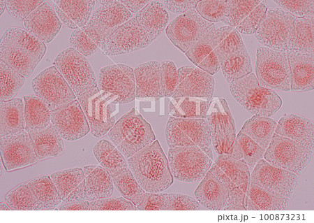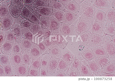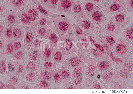 Root tip of Onion and Mitosis cell in the Root tip of Onion under a microscope.