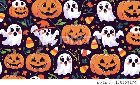 一個微笑的女人穿著萬聖節服裝,用掃帚和可愛的萬聖節物品漂浮在空中