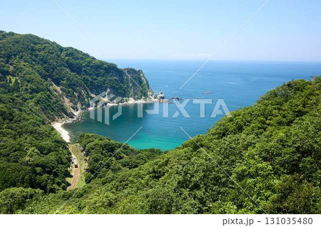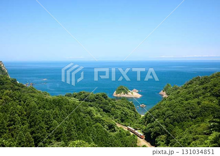 沿著雨晴海岸行駛的 JR 冰見線列車