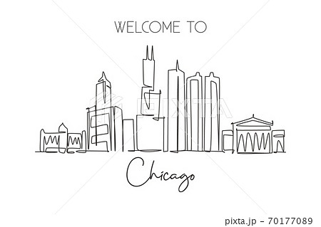 Single continuous line drawing of Chicago city skyline, USA