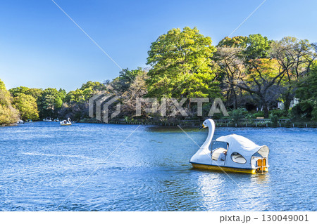 井之頭公園井之頭池塘的天鵝船和秋葉