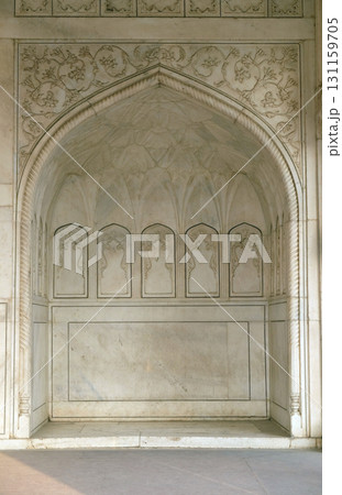 Red Fort stone carving pattern detail in Agra, Uttar Pradesh, India