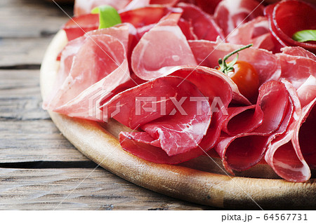 Italian antipasto hamon, on white background