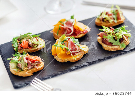 tasty colorful open sandwiches with meat