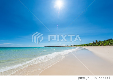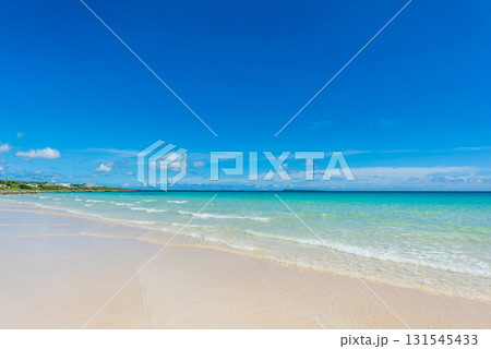 宮古島伊良部島渡口海灘的白色沙灘和海浪