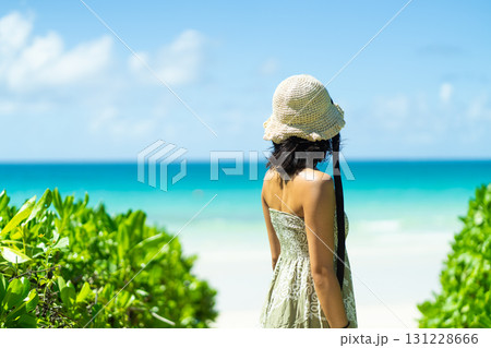 [熱帶度假村] 藍天、無盡的美麗海灘和年輕女子
