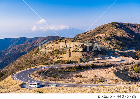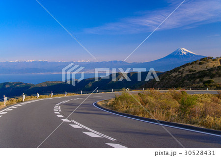 從靜岡縣伊豆天際線欣賞富士山和道路的絕佳景色