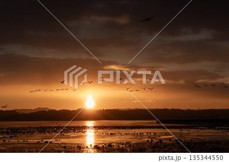 一群候鳥打破寂靜,冬天破曉