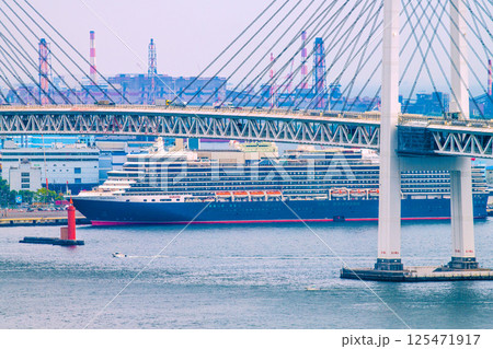 從女神大橋抵達長崎港的遊輪(伊莉莎白女王號)[長崎市]