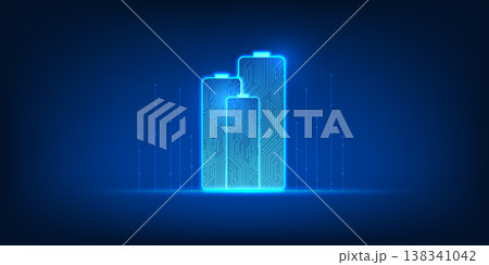Battery technology, Vector illustration battery placed on technology circle The battery is an electrical storage device and releases energy into electronic devices without using the house power supply
