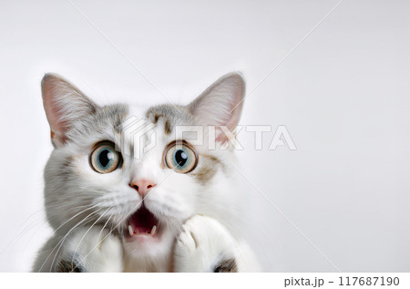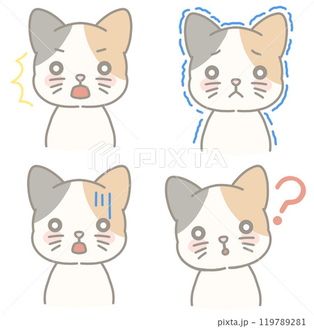 各種表情的印花貓插圖:驚訝、顫抖、震驚、哈特納標記