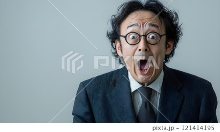 一名西裝革履的中年男子張著嘴巴,臉上露出驚訝的表情。